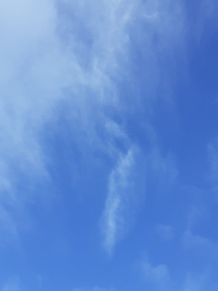 I love the sky in most weathers. I especially love it when it is azure blue and feels like a high domed roof, well able to contain the movement of wispy, shapeshifting clouds. The sky is part of nature, just like the earth. It is not a detached, alienated realm, beyond the influence of what some traditions might call our little life.