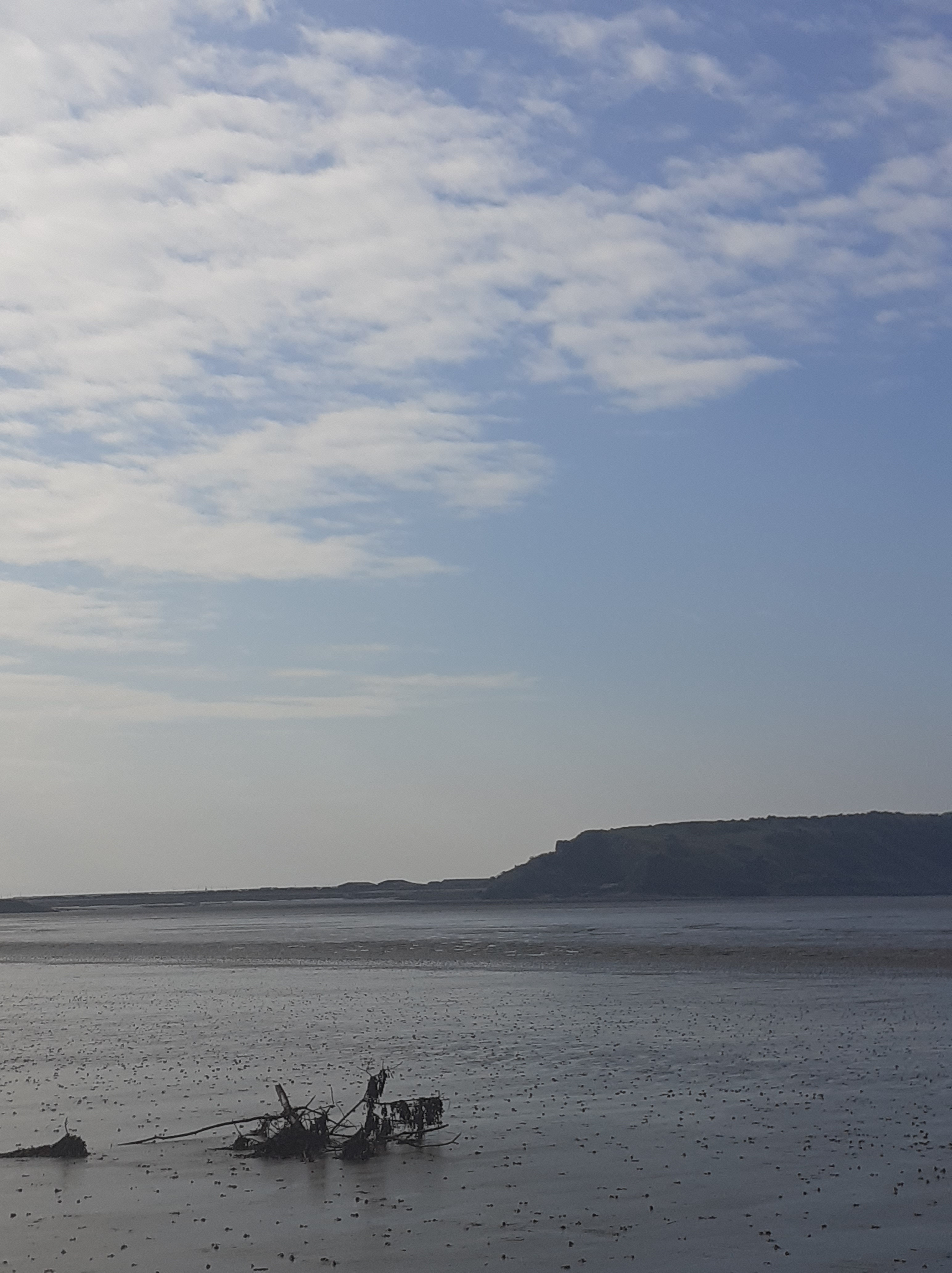 Approaching Samhain, I feel drawn to themes of paring down and letting go. Pictures from a recent visit to Weston beach reflect this minimalist mood. The tide was out, leaving an expanse of flat muddy beach, not easy to distinguish from the sea. Sea-wrack and bare wooden posts were prominent features here. I enjoyed the clarity and immediacy of this setting, and also a sense of a quiet latency, before the water returned.