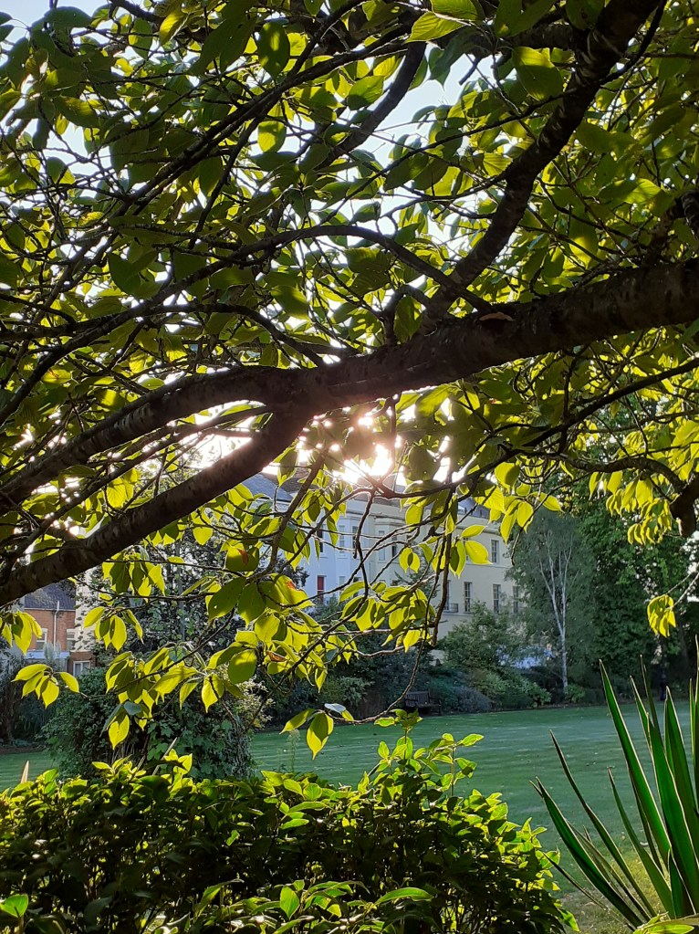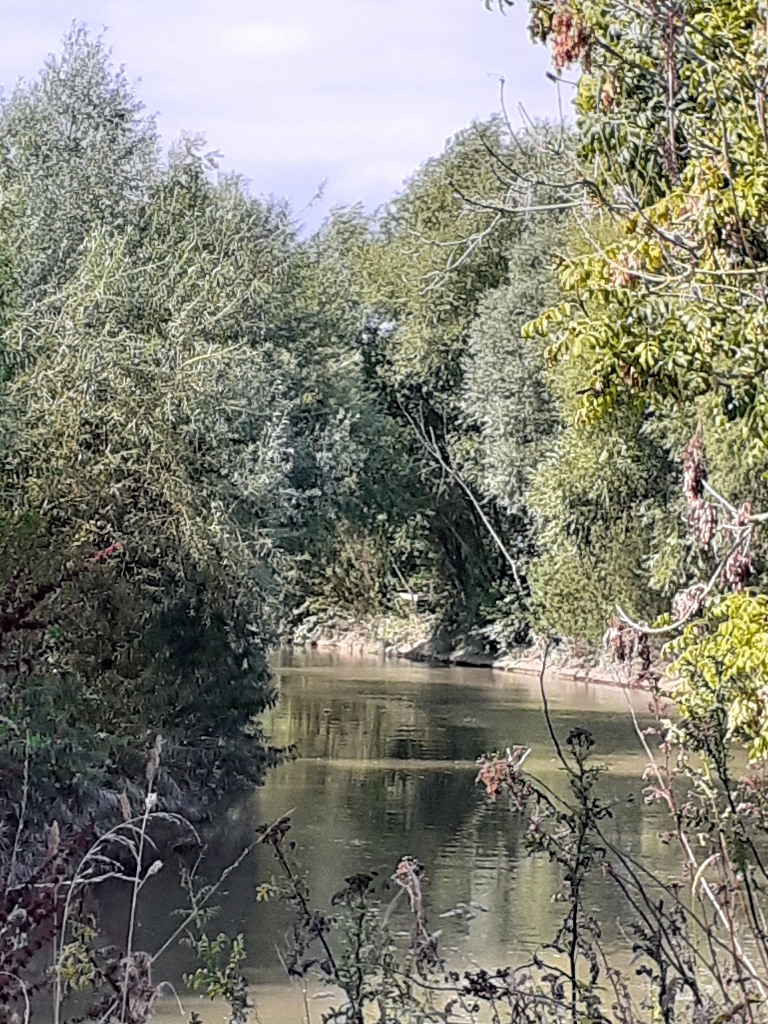 Later, a little before 9 a.m., I am walking by the Gloucester-Sharpness canal. I notice light on leaves, and its influence on the gaps between trunks. The view, here, is over water. But it is the influence of sunlight that makes the greatest impression on me – captured in the picture as well as in real time.