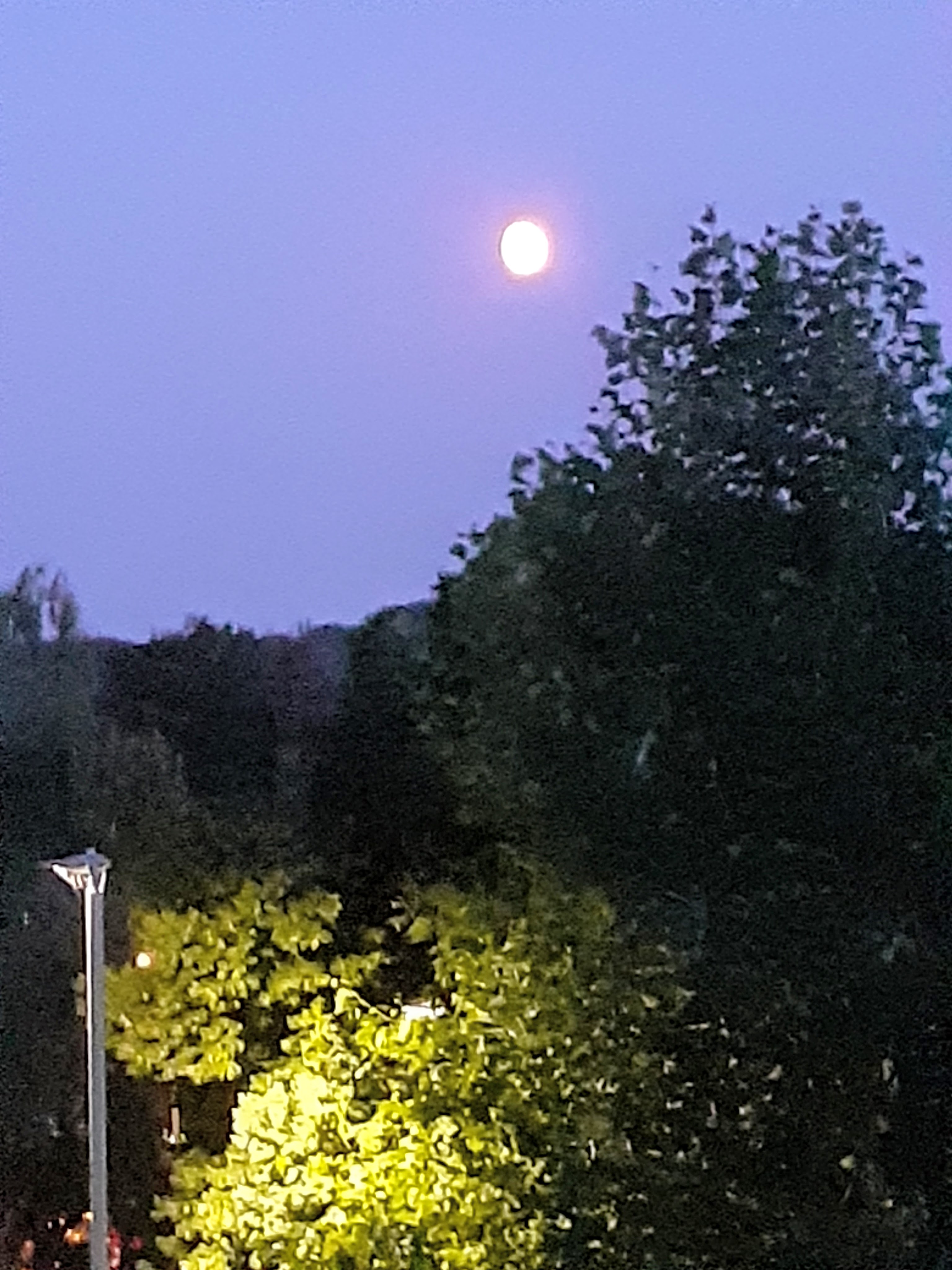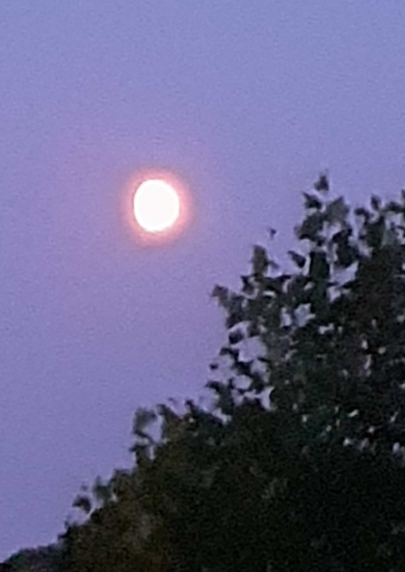 I felt that I was mobilising for a different life. A nocturnal life. To an extent, a lunar life. Standing on an east-facing balcony, I found deep twilight presided over a by a waxing gibbous moon – a super moon, close to the earth, only three days before full.