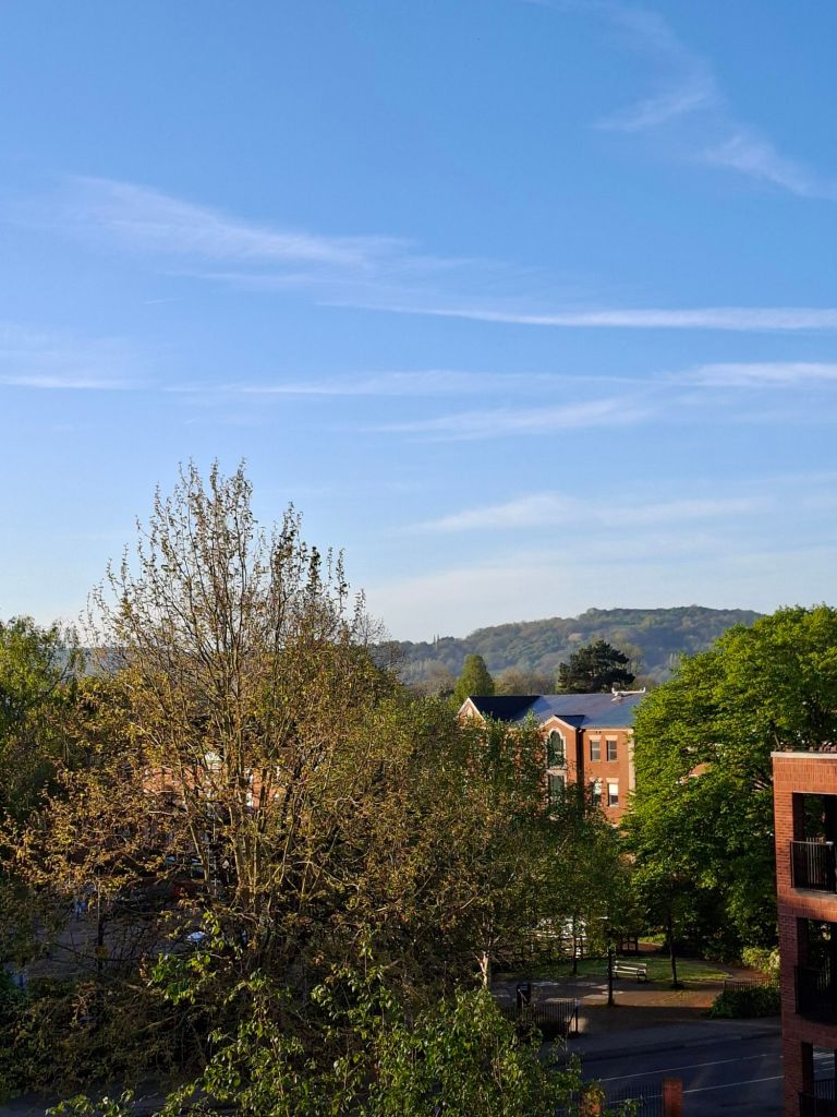 19 April 7.06 am, now a full hour after dawn. Above, a pleasant, even refreshing scene. But no sparkle. Yet my eyes saw moving, shifting moments of light – and I was heartened by them.