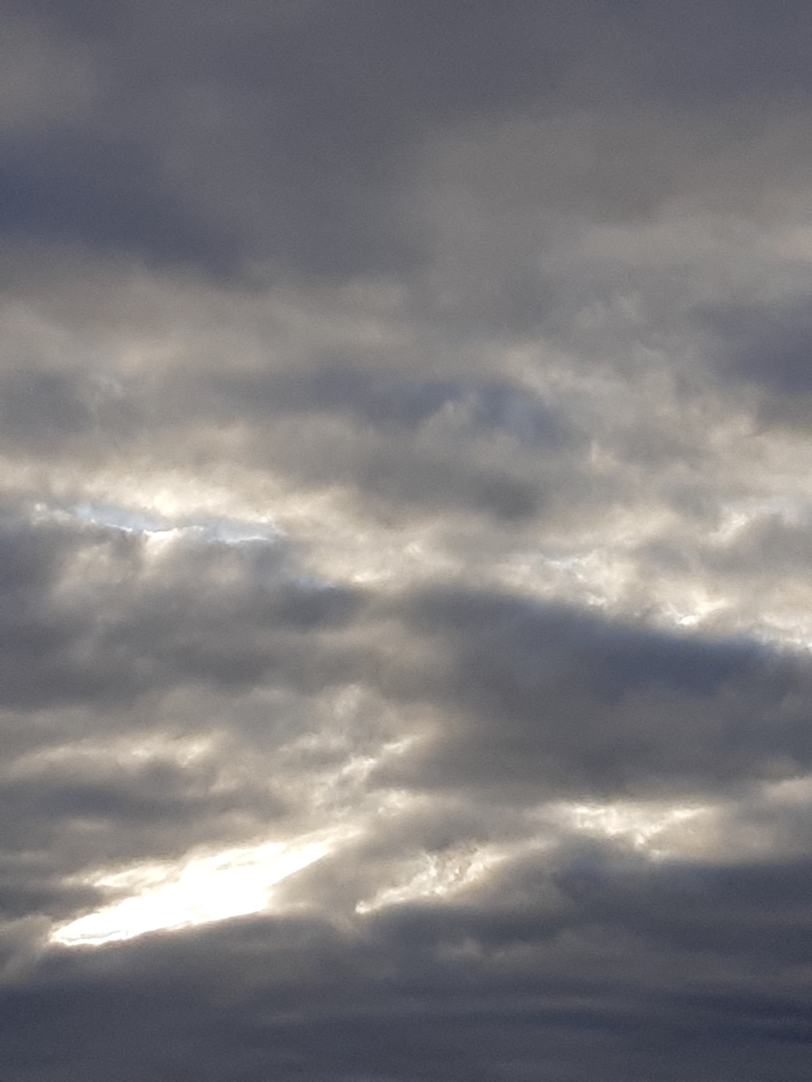 The same is true for the images that follow. Immediately below is a day time sky image. The day was frequently stormy, with high winds and hard rain. Dark clouds testify to moments of lightning, loud thunder and tumultuous rain. But the image itself records a period of respite. In a gap between the clouds, blue sky can be seen and the light pours strongly in.