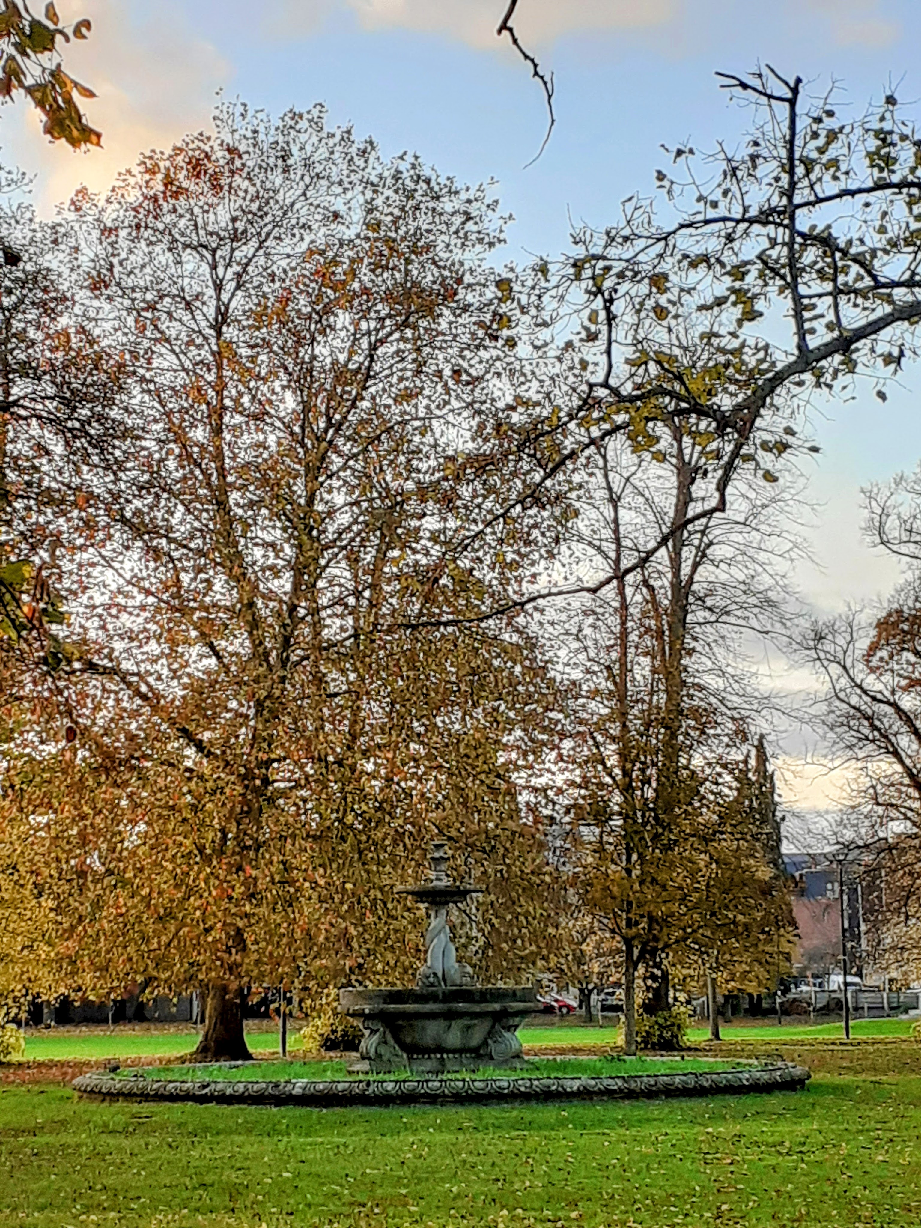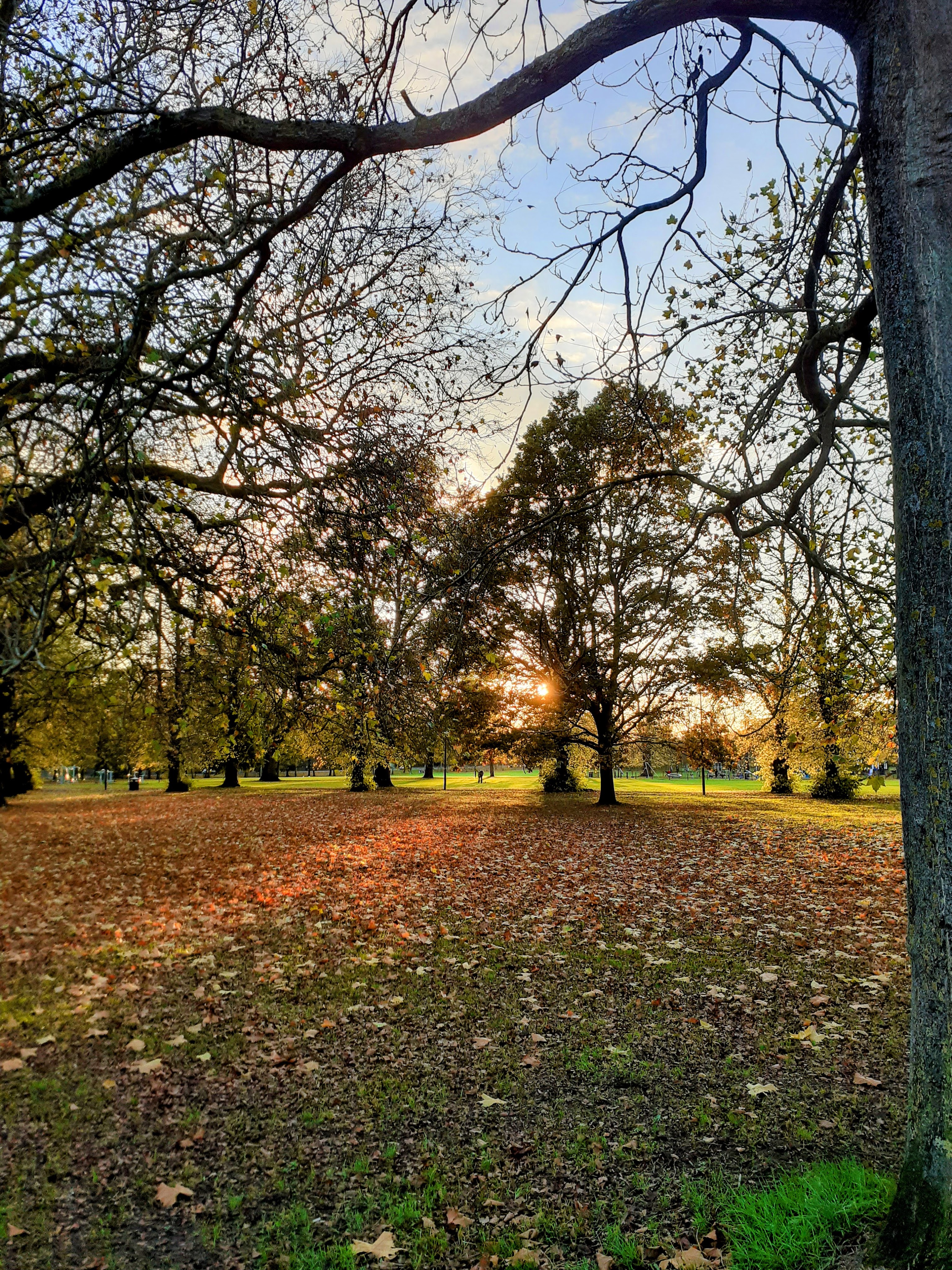 It’s about 3.45 pm on Thursday 14 November. For a few precious days there has been blue sky and a visible sun in my neighbourhood. But the days themselves are short and the sun is already falling in the sky. Its rays are brightly visible and they beautifully catch the leaves – those still on their trees, and those already on the ground. But much of the ground, apart from the carefully tended green lawns, is darker and more shadowy. It feels like a last hurrah of autumn before it gives way to winter.