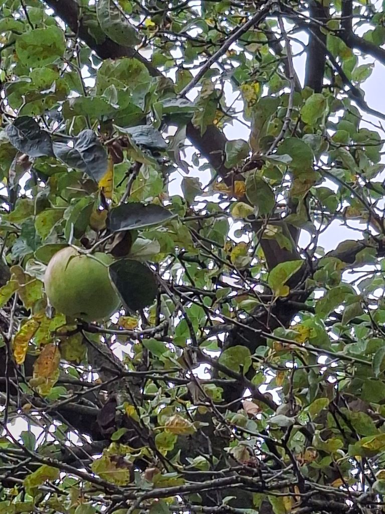 Here and now, the sight of the apple harvest in its later stages (pictured above) seems quite different than in the early ones (2) – less bright, less novel, less shiny. Rotting apples lie on the ground, now fallen outside the wall of Gloucester Cathedral’s orchard. From Nature’s exuberant perspective, this is all part of the plan. Waste is built in.