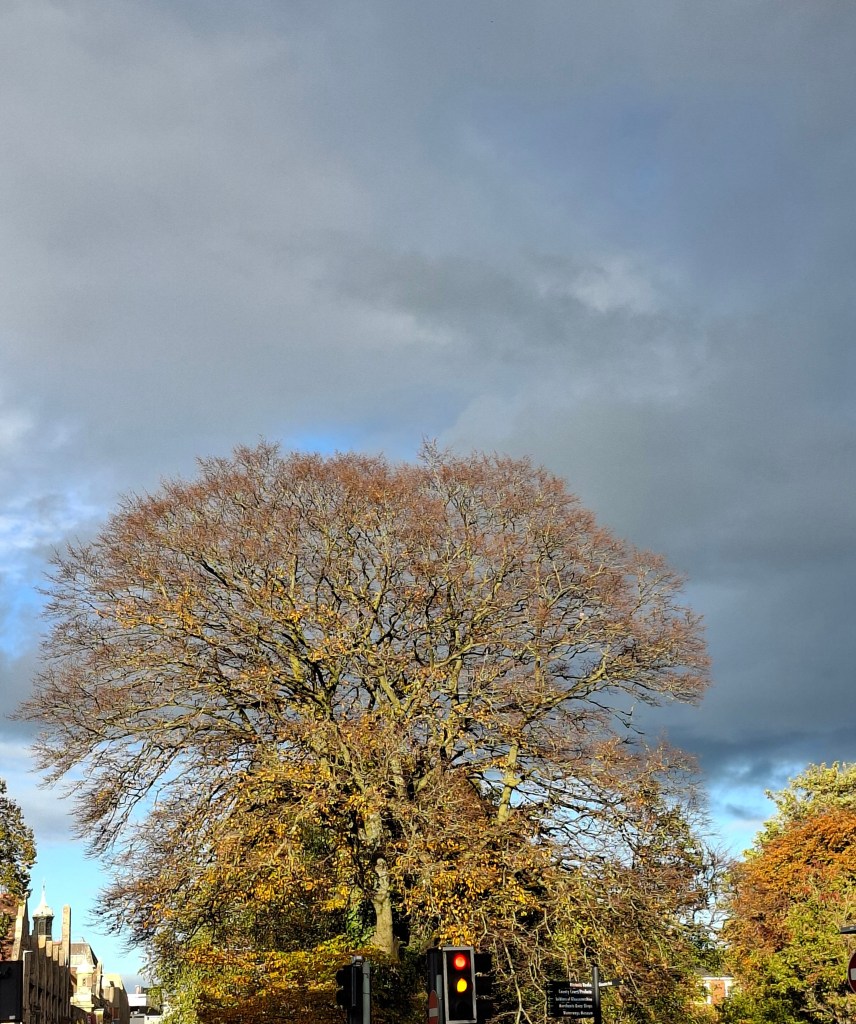 Elaine and I went to the Gloucester Cathedral Close and its surroundings on Saturday afternoon 18 October to outrun an extended period of gloom, wind and rain. We are now in it, so the lessons of the trees in deep autumn, anticipating the coming of winter, are not lost on us. The dark of the year is on its way.