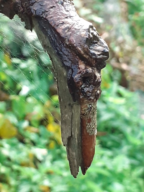 … or a naturally sculpted head of an unknown bird or reptile, which also offers space for a cobweb …