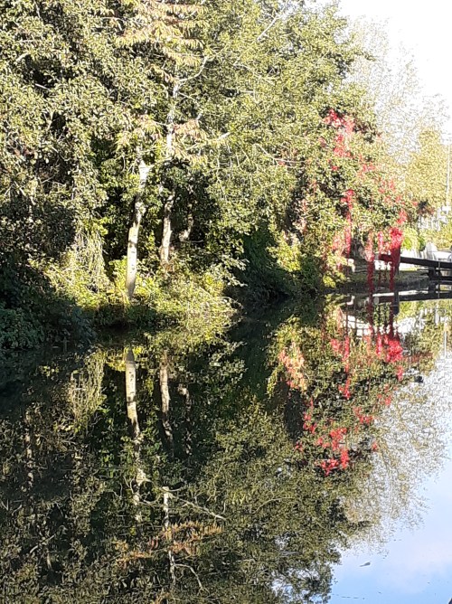 As the autumn deepens, I find that my canal walking has slowed down and detached itself from notions of exercise. It has become spontaneously and informally meditative. I am simply noticing what is available, rather than striving to get to some other place in myself or in the world. Followers of the Headless Way (1) describe such attention as ‘being capacity for the world’, since the world knows itself through this awareness. One of the Headless Way’s poets, Colin Oliver, has the lines (2) “In the oneness of things/ I am nowhere in sight”. I am like that with my phone/camera. I rarely have it in the selfie mode, so it is a good device for the purpose.