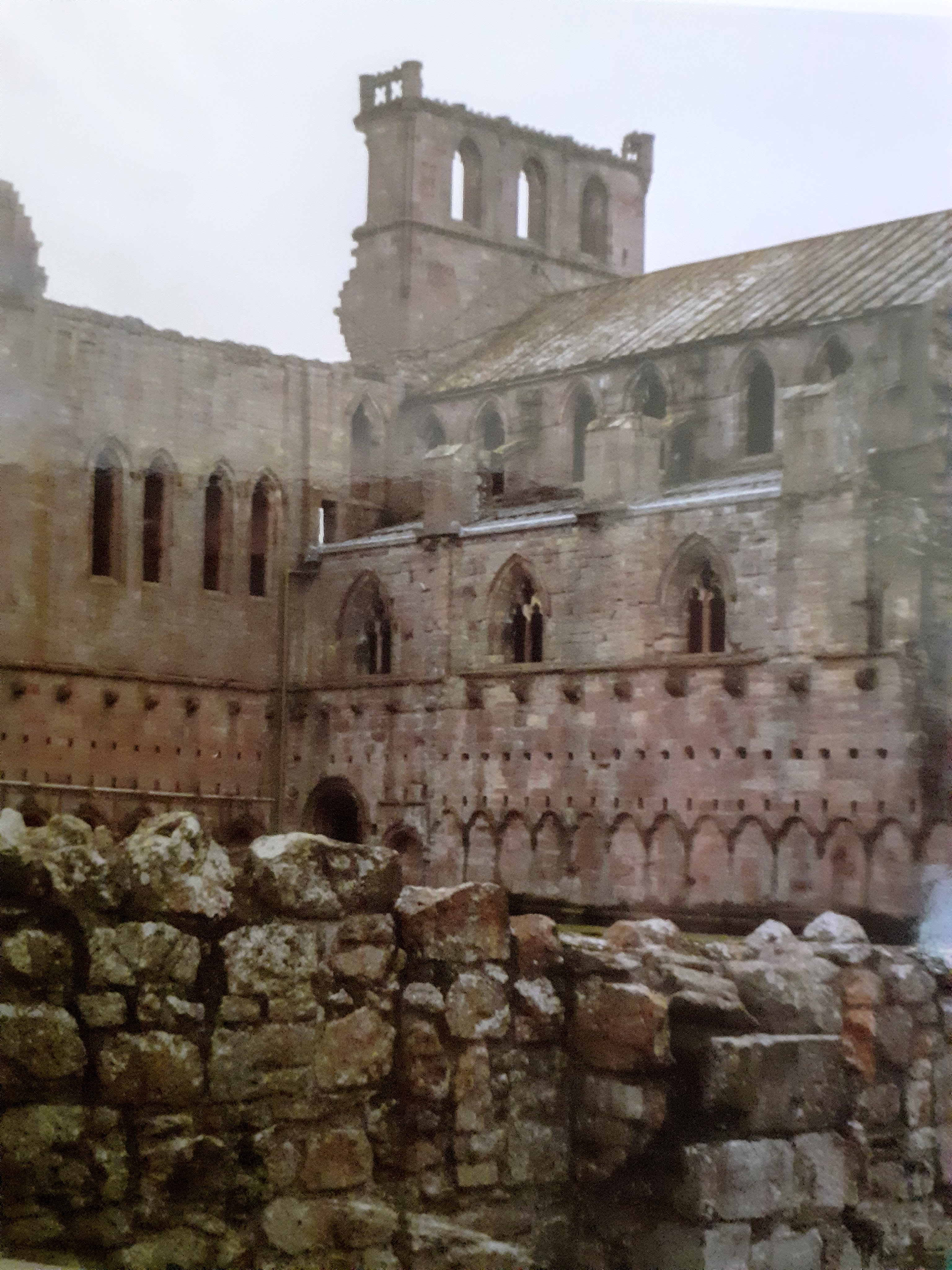 Here I see the abbey as a solid, material buildings, built with love and care. Even today, it belongs in its landscape, as much as the Tweed or the nearby Eildon Hills, with a semi-wild orchard of apple, pear and cherry trees. What I haven’t written before, in times when I was busy making distinctions between available paths, is that time and eternity intersect in this place too. But, on the day in question, I didn’t have that experience in the abbey grounds. I had it only among the wild roses, down by the river.