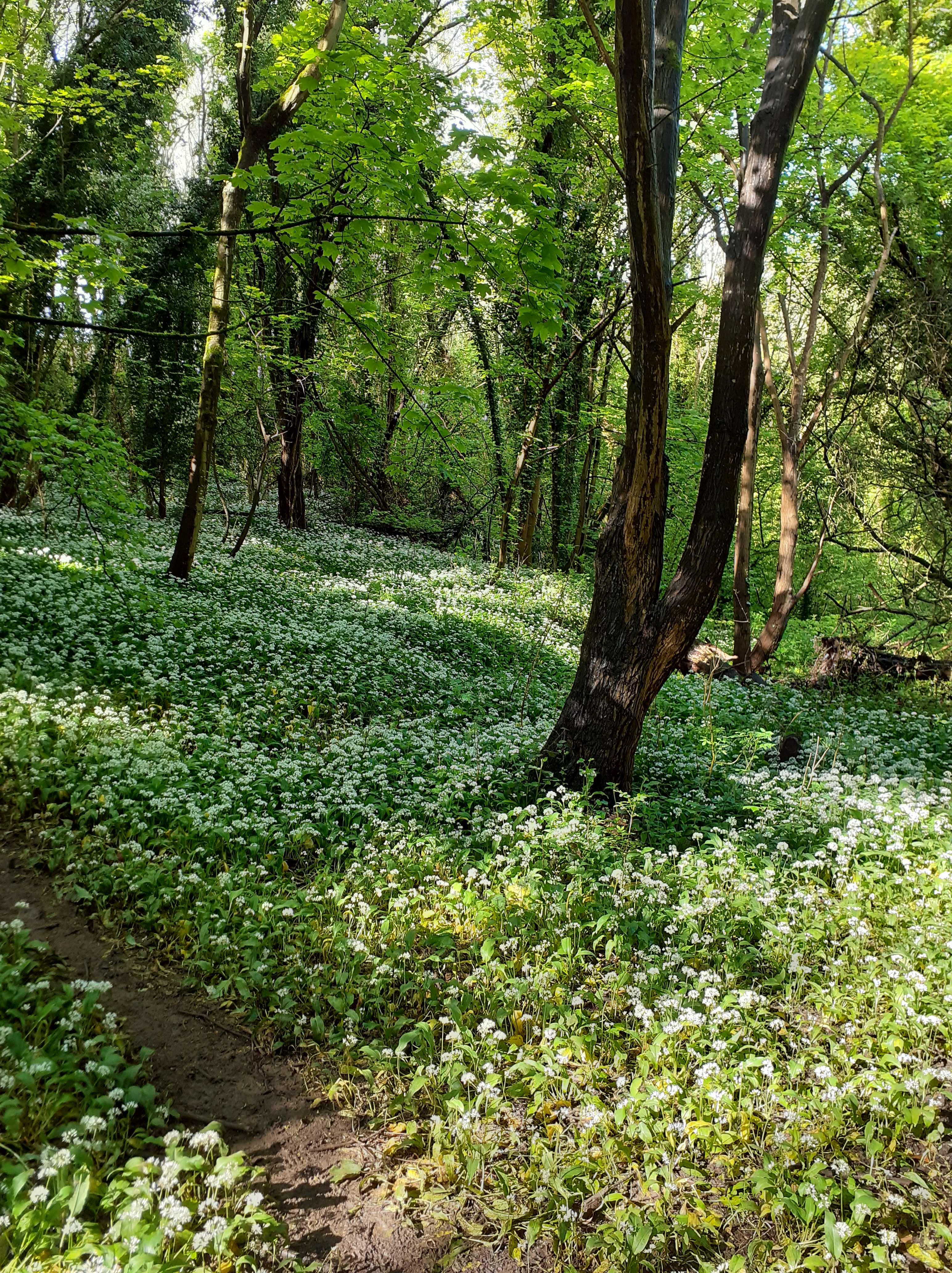 The woodland I walk in is hardly pristine. It grows in a long-disused railway cutting, now refashioned into a cycle track. At this time of year, and throughout the summer, it is wonderfully green and vital. Here, in this early stage, it feels especially fresh and alive.