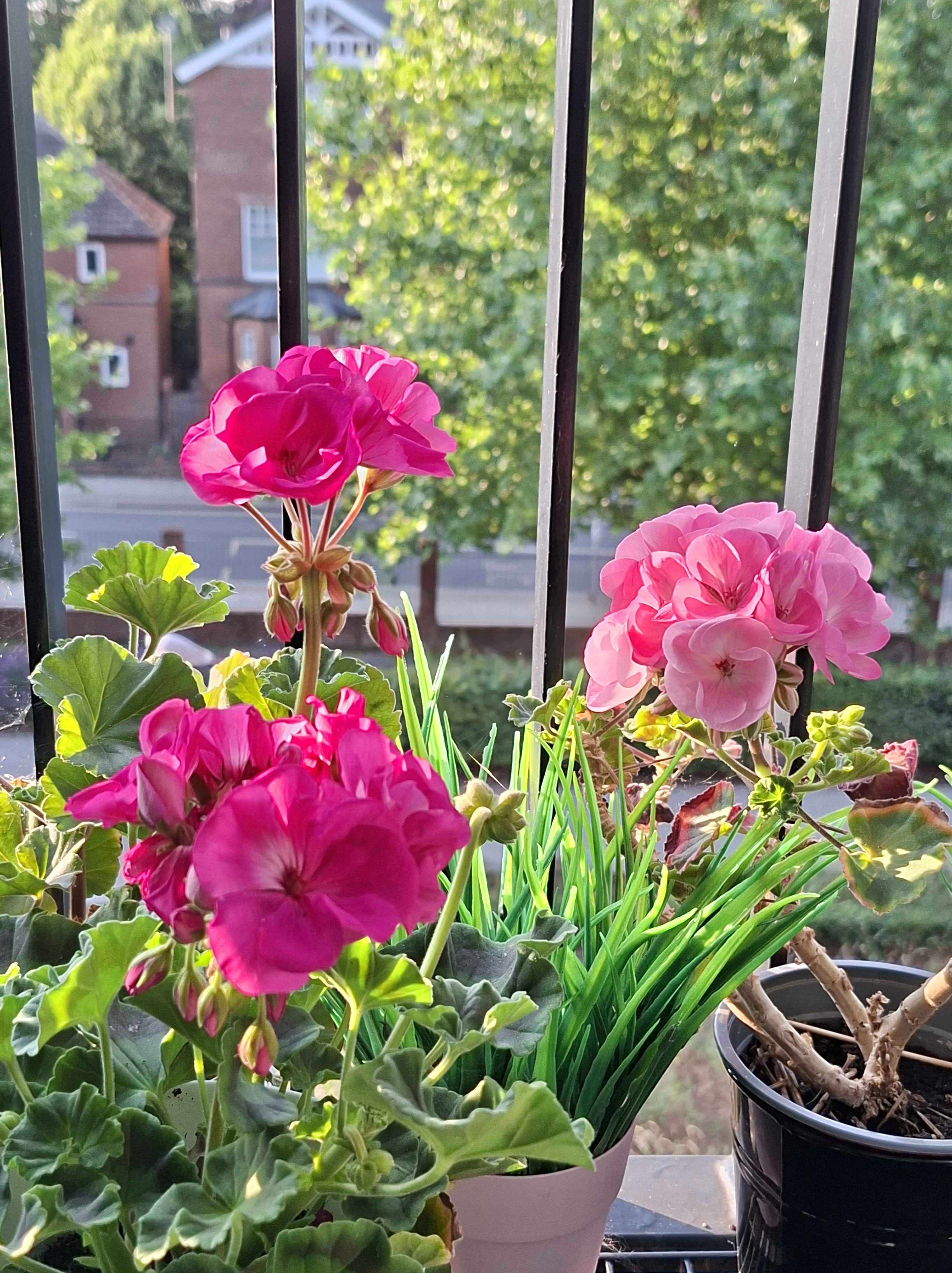 Early this morning I sat in contemplation of some geraniums in pots, for me a good Druid focus of attention. Purchased and tended by my wife Elaine, who is now mobile and active once more, they shone in the early morning light. This was about 6.45 am, some two hours after dawn, on 19 June. It is two days before the Solstice. Where did the time go?